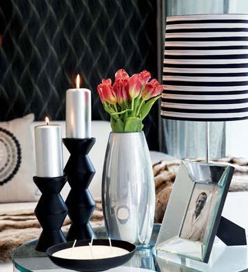 搭配黑白兩色,最佳伴侶無外乎金屬與玻璃材質。茶幾是玻璃的,燭臺是金屬的,雖然摩登,卻不免冰冷。于是點燃蠟燭,紅色郁金香簇擁而上,頓時讓人感到鮮活蓬勃的生機,主人的照片靜靜擺放在一旁,也讓房間多了一絲溫暖。