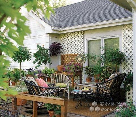 用絢麗的盆栽配合天然質(zhì)地的室外家居,用露臺(tái)變?yōu)橄矈蕵?lè)室。在這里擺弄一下盆栽,談笑聊天或休息打盹都是那么令人愉悅。