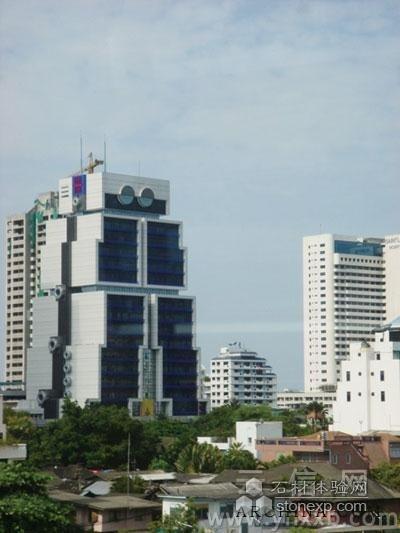 位于泰國首都曼谷商業中心區內的機器人大樓,從外表看,這座大樓的外形就像一個閃著金屬光澤的巨型機器人,而且還長著一雙圓圓的大眼睛,“身體”兩側還各有一排“大螺帽”。大樓外部泛著金屬的光澤,讓人立刻聯想到變形金剛。大樓的樓頂還豎起兩根避雷針,就像機器人的兩根天線。機器人大樓是泰國地標性建筑,它因為獨特的外形設計,而成為建筑界可圈可點的杰作,被美國的洛杉磯當代藝術博物館列入全球最有藝術性的50座建筑之一,更在網上被評為全球最具特點的建筑物之首。
