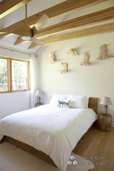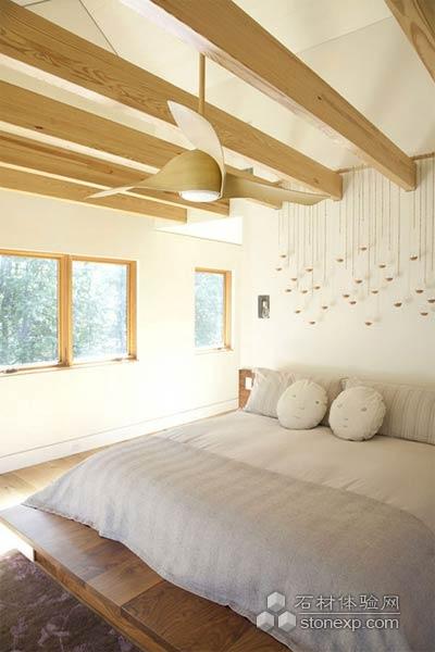 裝飾的原木態,飛烏,及臺燈下的木柱,床上枕頭的圖案,惹人喜愛。