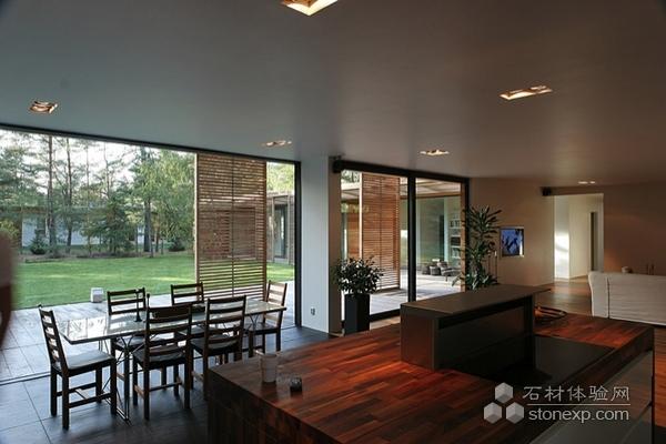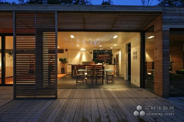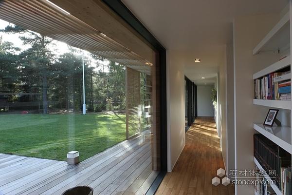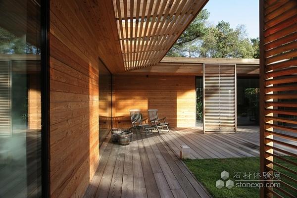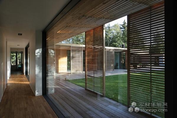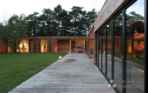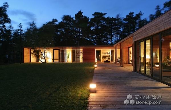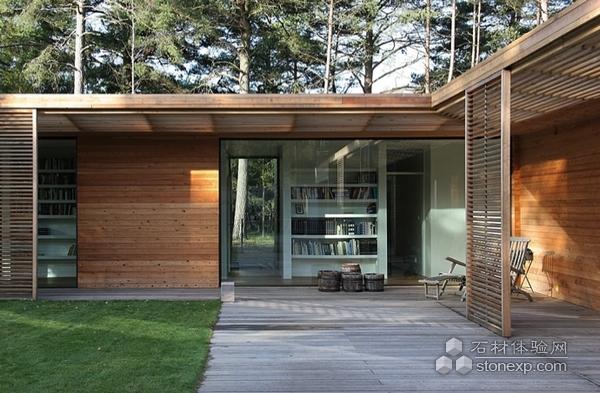 這樣的林間住宅,優美的環境是無可挑剔的,而且設計師將整個設計都融合木質材料,以原木為主,這樣就更加地貼合自然,讓住宅和自然融為一體。
