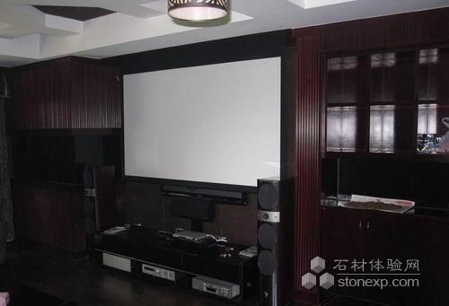 因此加上兩個(gè)房間的面積打造成一間客廳一間家庭影院。使整個(gè)空間更加大氣、寬敞。