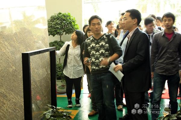 針對(duì)這一問題,深圳十幾家大型設(shè)計(jì)公司的設(shè)計(jì)師及材料員成立了深圳材料顧問聯(lián)盟,并于11月27日上午前往東莞環(huán)球石材集團(tuán)總部。在工作人員的陪同下參觀了大板加工廠、異型產(chǎn)品加工中心及特色石材展廳。了解了石材加工過程,最新的加工工藝、最新的石材品種及天然石材應(yīng)用趨勢(shì)。