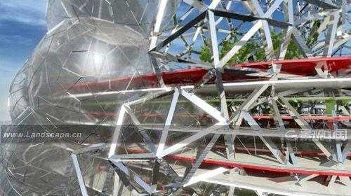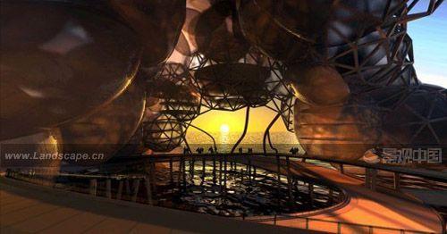 另外,根據(jù)風(fēng)向和陽(yáng)光朝向,設(shè)計(jì)師在泡泡之間設(shè)計(jì)了一些“裂縫”,并在這些“裂縫”中設(shè)置可用于公共交往的綠色空間與空中花園。通過(guò)在這些空間設(shè)置精巧的活動(dòng)天窗,建筑就可以利用中庭的抽吸效應(yīng),為自然通風(fēng)裝置收集風(fēng)能了。寬闊的建筑內(nèi)部空間亦光線充足,這里活力四射,生機(jī)勃勃,新穎非常。電動(dòng)機(jī)械設(shè)施被嵌入建筑外墻上的管道,每當(dāng)夜幕降臨,這些管道將被照亮,散發(fā)著迷人的光彩,使整棟建筑顯得更加美麗。[page]