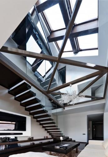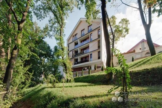 這個住宅位于一個城鎮的歷史中心,它有著沖著山頭和城市中心的絕佳精致。場地的特殊性決定這個住宅必須要合理考慮建筑與室外景觀的聯系。建筑包括六個公寓,兩個閣樓。排布緊湊,動感靈活。建筑簡單干凈的結構通過不同材料之間的反差和互動被加以突顯。窗戶都是可以長及地面的,這樣使房間顯得更大,使室內充滿陽光。屋頂的天窗也使陽光通過玻璃地板直抵室內深處。