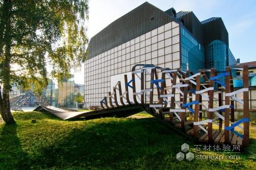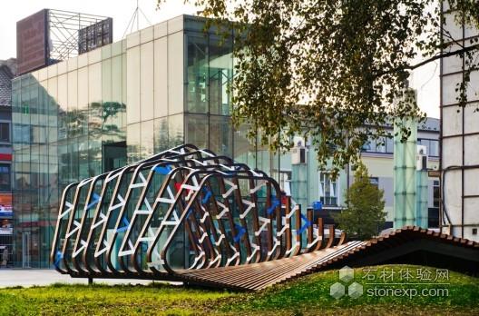 這是由uniform建筑師事務所最新完成的位于斯洛伐克馬丁的一個文化亭。他們通過運用參數化模型制造軟件Grasshopper實現了這個設計,同時還添加了一些彎曲和弧度,將參數定義為靜止的輸入元素。