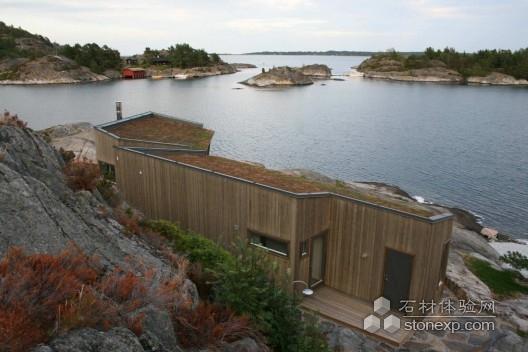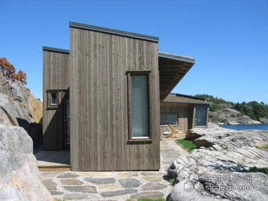 這個木屋是對一個舊房子的重新利用,并加上了新的外體和新的柱子。建筑為雙層,包括一個起居空間和一個臥室空間,并融合一個保護性的遮蔽,抵擋不同的風力情況。空間排布形成一個開闊的翼結構,它向著南部敞開。南翼包括私人空間,東翼包括開闊的起居和廚房空間。