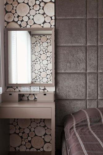 響應屋主希望整體空間要有大器而通透的格局,客、餐廳以開放式設計,延展各區之間的互動與流暢感,客廳電視墻則特別采用大圖輸出作為主景,輔以冰柱玻璃的妝點,使畫面看起來立體有層次,顏色也更加鮮艷。餐廳選擇銀色花紋壁紙修飾上方的空調設備,連貫的設計也銜接至廚房的空間,吧臺兼備餐臺為滿足屋主想要的美式時尚感,所用的材質色調便以黑、銀色為主,加上餐邊柜做搭配,豐富立面中的景致與層次變化,流露不凡的品味與氣韻。