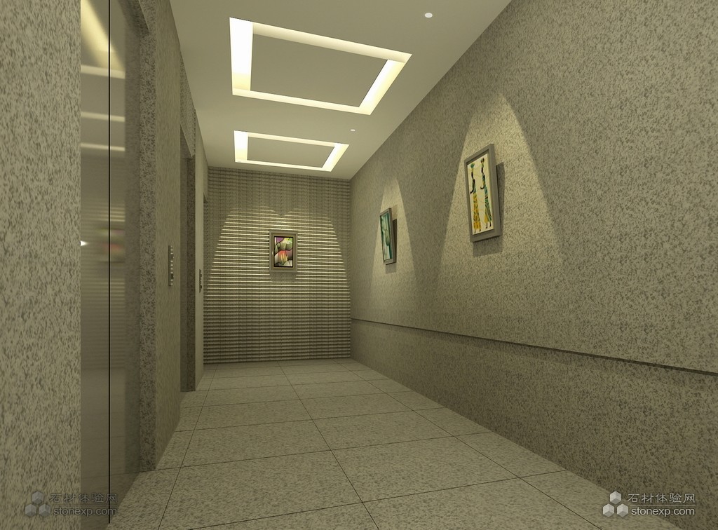 | 簡(jiǎn)單描述: | 此設(shè)計(jì)為暢想2011年環(huán)球石材大廈大堂的局部效果,裝修材料以美國(guó)灰麻為主,通過不同石材處理表面的搭配運(yùn)用及大膽、創(chuàng)新的墻面造型,給人簡(jiǎn)約、大氣的視覺沖擊感。如:電梯廳外部墻面石材為荔枝面,地面石材為仿古面,電梯廳內(nèi)部墻面的抽槽及毛面對(duì)比效果,粗糙感的石材與精致的鏡面不銹鋼材質(zhì)對(duì)比,整體灰色調(diào)空間搭配色彩艷麗的裝飾畫,冷暖色調(diào)的燈光搭配運(yùn)用。 整個(gè)設(shè)計(jì)突出大面積運(yùn)用石材的裝修效果,同一空間、一種石材多種處理面的搭配運(yùn)用達(dá)到以少勝多的效果。 |