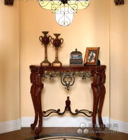 紅木雕花條案 明亮的玄關選擇鵝黃色的墻面,但是紅木的條案早已將奢華的氣質不經意地流露出來。