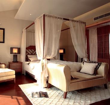 簡約中式臥室 帶有帷幔的復古大床用白紗和原木材質混搭,亦軟亦硬,亦中亦西,設計師的睿智體現于此。