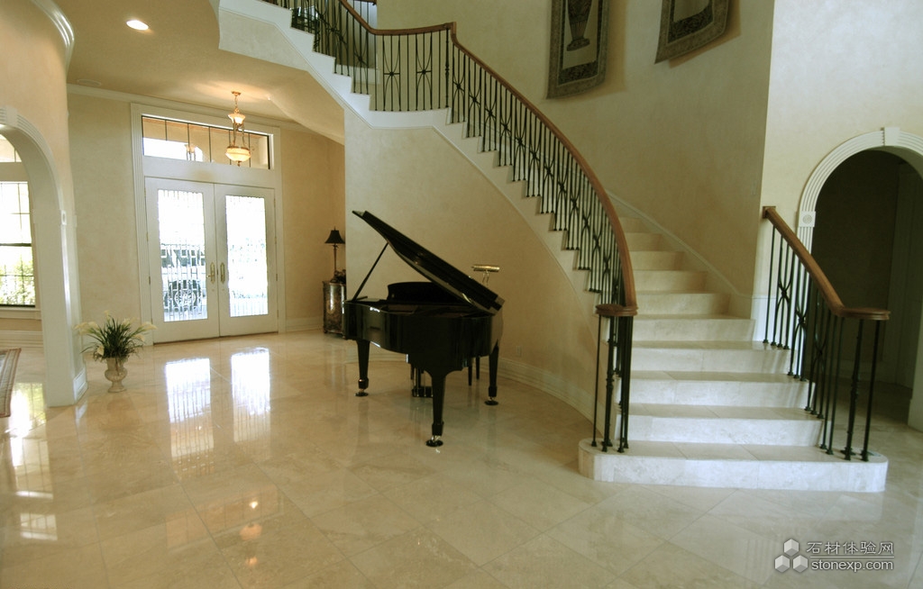 寬敞的大堂空間,樓層之間采用旋梯設計。