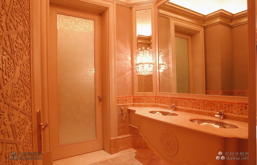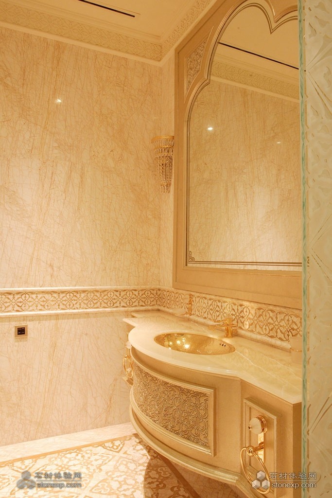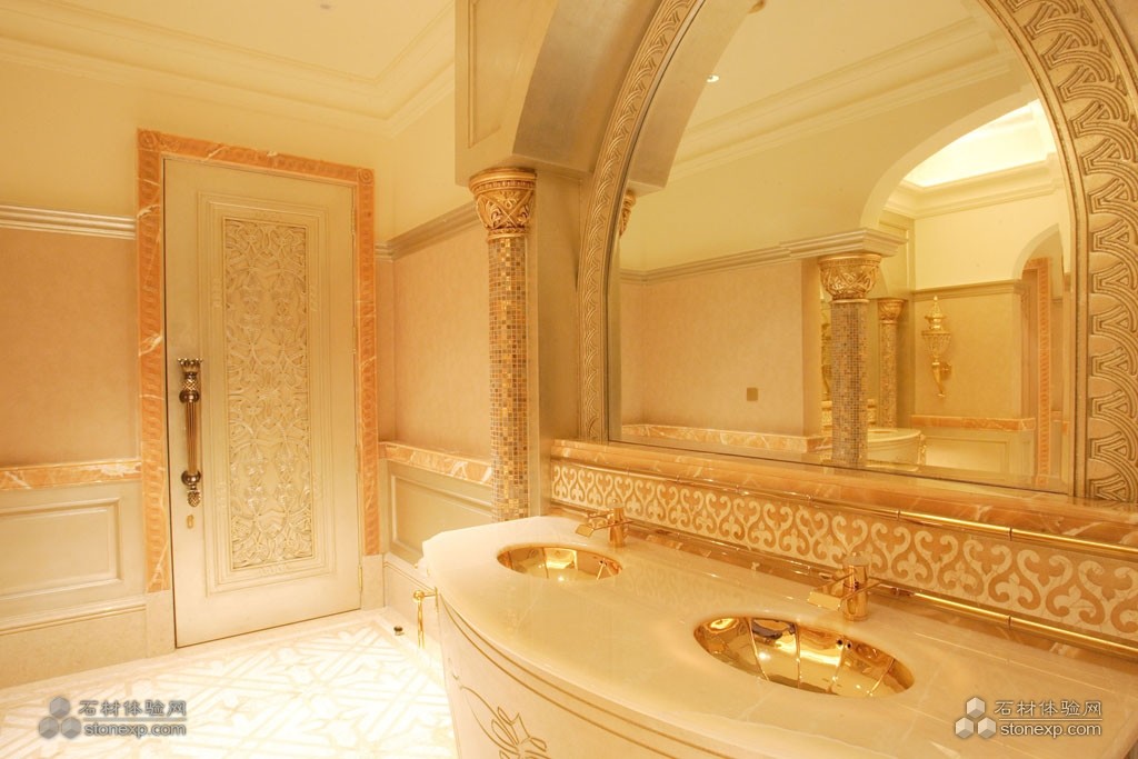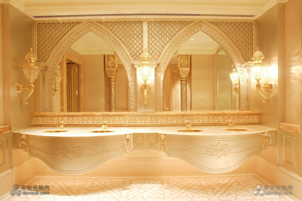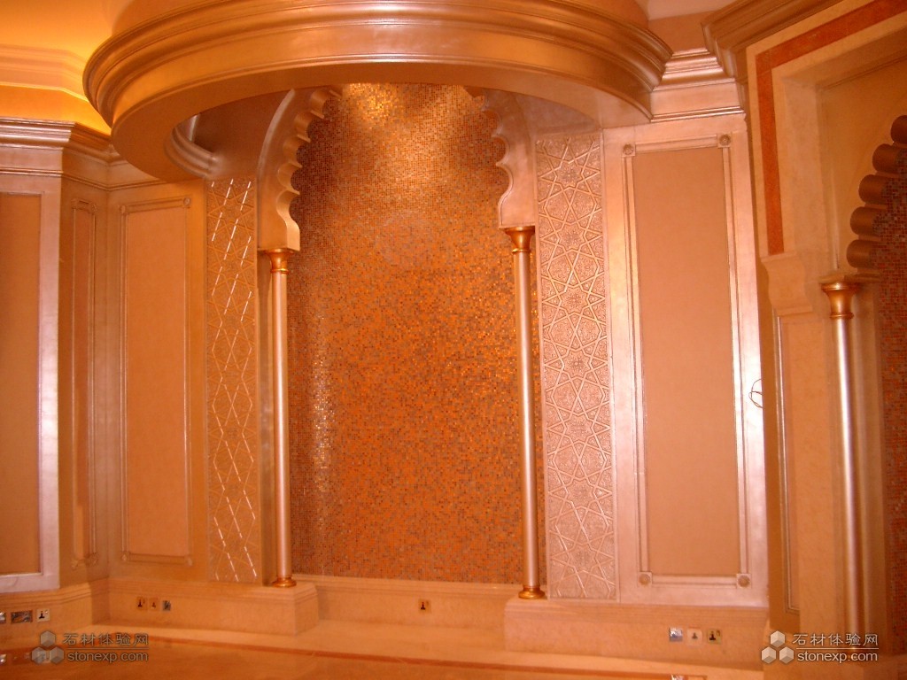 阿聯酋皇宮酒店,被譽為世界最豪華、八星級的酒店,香港環球石材集團在與意大利等國際公司激烈的競逐中,憑著突出的資源優勢、技術優勢、統籌大型與超大型工程石材的豐富經驗而中標,成為唯一入圍的中國公司。整個工程耗資逾30億美元,耗費近150000立方米的進口大理石,而酒店的核心部分,包括總統套房、部長套房、總統及部長Lobby、VIP入口等部位的裝飾石材均由香港環球石材提供。