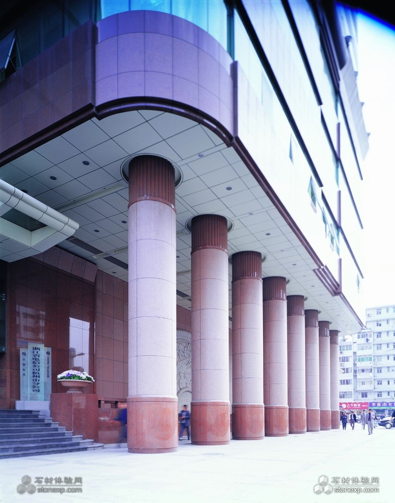 簡單描述:杭州陽光商業城,建筑外墻采用紅色花崗巖。大樓入口圓柱采用天然石材。