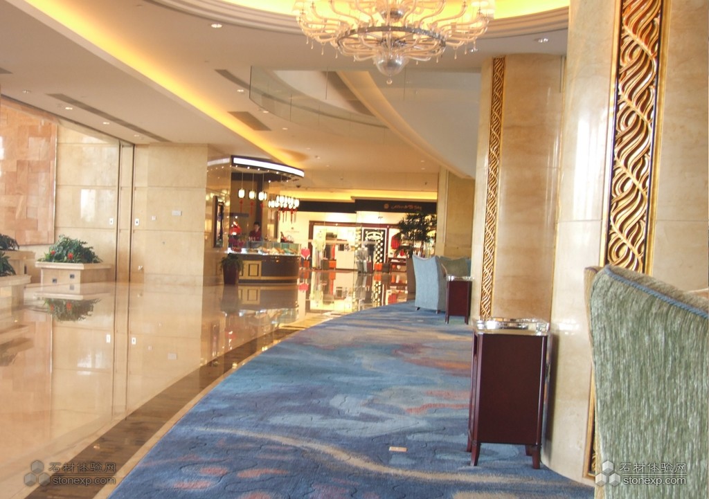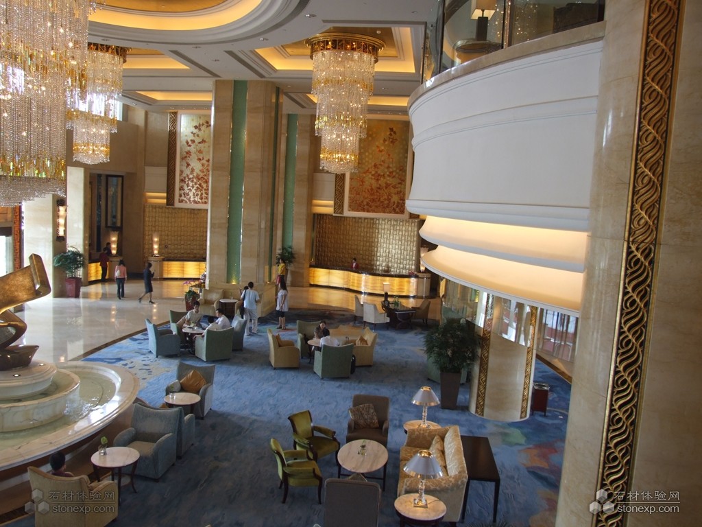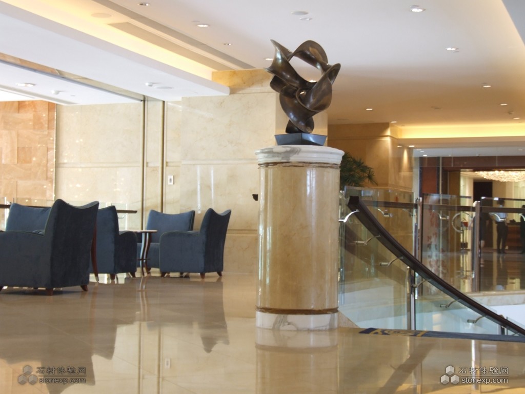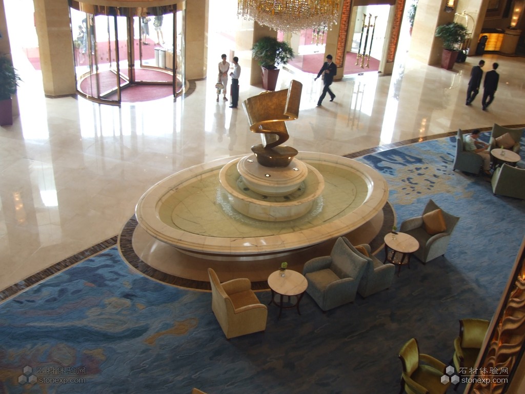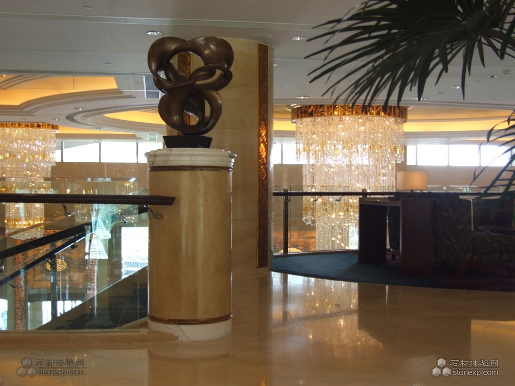簡單描述:廣州香格里拉酒店是一家五星級的渡假式酒店,其內部裝修和外部裝修都用了大量的天然石材,如石材水池,石材馬賽克,石材表面效果的背景墻等,由環球石材公司提供的天然石材主要為:西班牙米黃、淺啡網、金線米黃、西米。