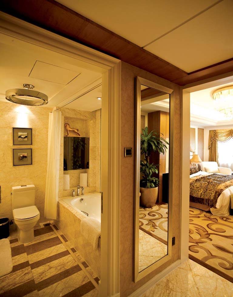 簡單描述:酒店套房中的豪華大理石浴缸