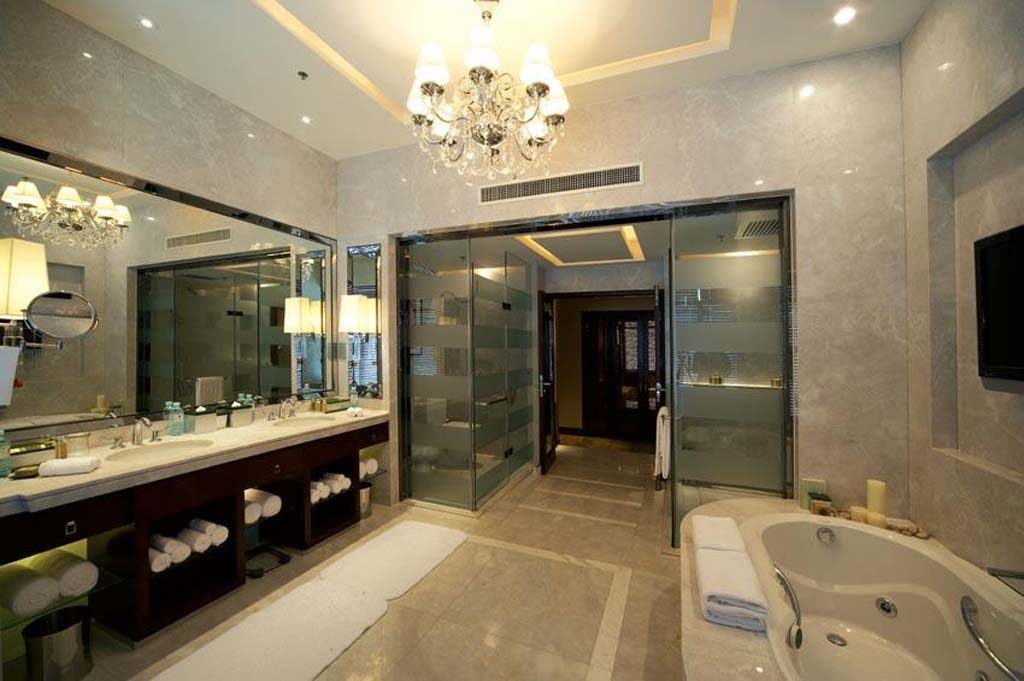 簡單描述:設計師用天然的米白色石材,含蓄地展示出高品位的浴室風格