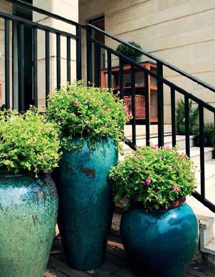 戶外的綠色植物搭配具有造型感的陶瓷花器,植物的錯落層次營造出庭院的氛圍來。