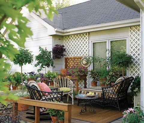 花草:茂盛的盆栽緩和了露臺的氣氛,有助于放松情緒。可在露臺邊的花箱里種長春藤,向外延伸的枝條將露臺與花園的景色連接起來。擺放幾株羅勒等香草植物,可以為聚餐提供天然的調味品。