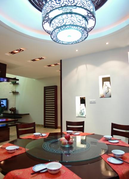 中式吊燈,雖然沒有水晶燈的華貴,但因其風格的和諧,博得了業主和眾多來訪者的好感。你看,整個空間有雕梁畫棟的感覺嗎?