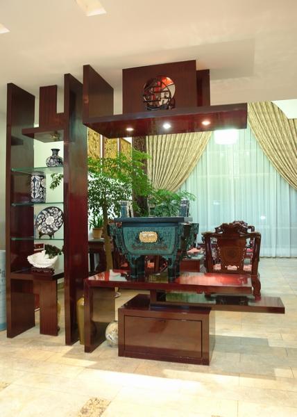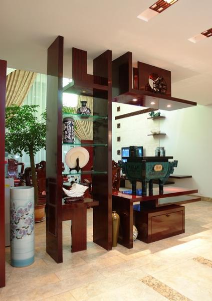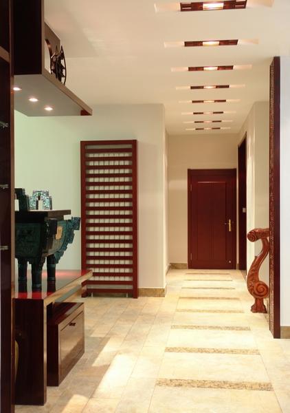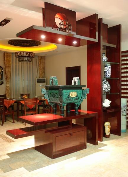 盡管這個工程完工后,并沒完全達到預期效果,但也算有些小亮點。一般來講,作中式設計比較難出新意,畢竟中式風格歷經千年的錘煉,已經形成一套固有的外在表現形式,稍不留神,就會流入“俗”套。再加上現代家居早已進入樓房時代,中式家居那種講究對稱和高大空間的設計手法,也是難以體現在現代家居中式家居中的。本案例的原始建筑是一套空間極不對稱的別墅,想在這樣的空間里,打造出一套具有濃郁中式風格的設計,無疑還是有一定難度的。