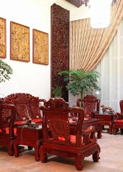 說起木雕,其實并不是我設計這個別墅初始就想用的。最早,確定下《中國印象》主題的時候,本來是想用傳統大漆工藝來詮釋需要表達的意想的,結果,因選定的那家漆器廠的冷漠以及各種原因,最后只好放棄使用漆器而改用木雕。