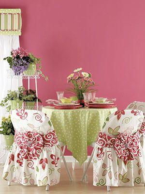 普普通通的折疊椅隱藏在顏色鮮艷,款式新穎的椅套里,與桌上鋪的色彩夸張的桌布相映成趣,平凡立刻得到升華,感覺像置身在一場熱鬧的大Party中。