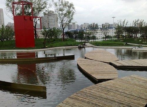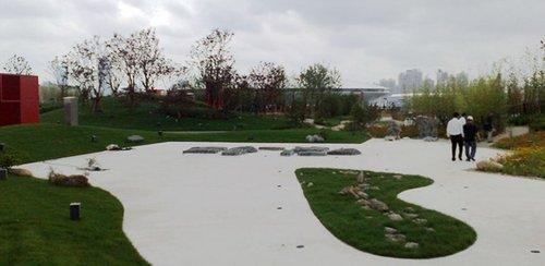 “新九洲清晏”高出地面14米,面積約2.7萬平方米,在世博會會期里主要用于人流集散,在世博會后為公共休閑場所。 “新九洲清晏”以屋頂平臺開闊的中心廣場寓意內湖水面,以九處園林景觀寓意九個島嶼。作為中國館主體的國家館位居“新九洲”之首,以“雍”命名,取“和諧”、“本”、“宗”之意;其他八洲依地勢和氣候分別為“田”、“澤”、“漁”、“脊”、“林”、“甸”、“壑”、“漠”,這些都是中華大地上的典型地貌景觀。象征荒漠、戈壁部分小島上還會建幾間小房子,作茶室、咖啡屋等休閑用途,有意思的是,這些小房子也會與每個小島的環境匹配,比如在“漠島”上,茶室就會被“埋”在一座沙丘底下。圓明園的“九洲清晏”被水系分割,當年是用大量的橋連接而成,因此在世博園的屋頂花園中,也是以水面來環繞每個小島,并在水面上三四厘米處,設立步道,讓參觀者穿梭水澤之間,體會清涼的感覺。以碧水環繞的九個島嶼將通過不同景觀的展現反映不同的自然地貌和人的生存狀態,象征我國廣袤遼闊的疆土。[page]