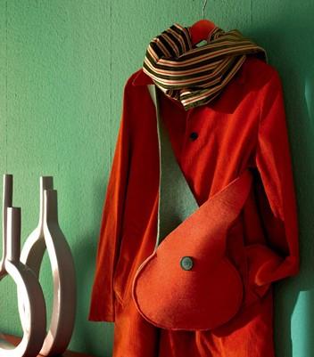 橘色本來就擅長制造熱烈溫暖的氛圍,若你剛好有一款橘色的大衣,那么自己動手制作一款相配的同色系背包真是再妙不過了。