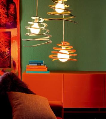 一組三盞燈錯落有致,螺旋狀的毛氈燈罩也在燈光的映射下顯得格外溫暖。盡量選暖色系,跟家居環境相呼應的色彩。