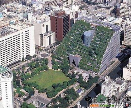 日本福岡市的ACROS綠屋頂,因其獨特的設計和對綠色空間最大限度的保留而引人注目。該建筑一側面朝福岡市最繁華的商業街,這一側為玻璃墻,使其看起來和傳統的辦公大樓無異,而另一側卻是一個巨大的綠色房頂。綠屋頂如梯田般一層一層向下依次排開,共覆蓋著35,000棵植物。整個綠屋頂延伸至地面的花園。