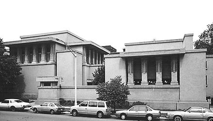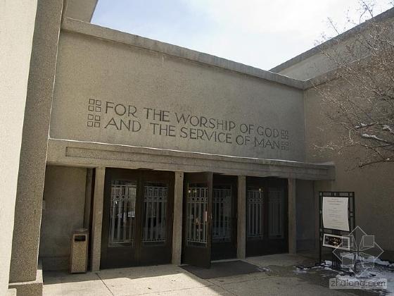 年建造的聯合教堂顯示出賴特的創新精神。這里沒有用常見的象征性的尖塔和陡坡頂。他認為這樣的象征太像文字。他認為教堂應作為公眾集會和游樂的場所。因此,他設計了這座平屋頂建筑。由于投資少,現澆混凝土內外墻面均未修飾。教堂形狀為正立方體,四周邊長、高度都相等,以節省模板。賴特著意處理好內部空間,力圖打破匣子般的感覺。