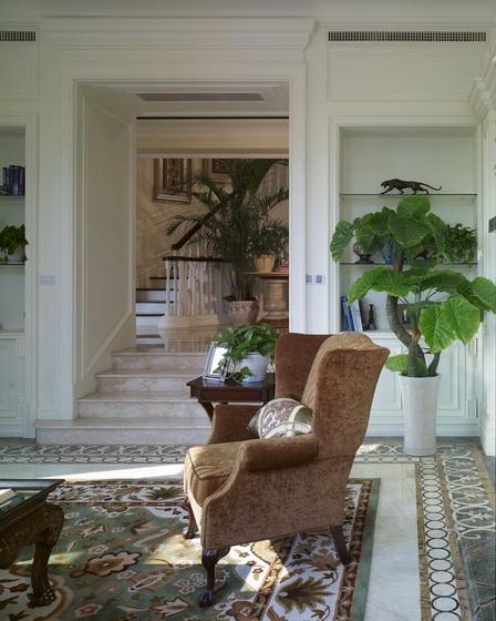這一套房子我們希望結(jié)合一些法式設(shè)計的元素,淺淡的灰綠色調(diào)變化穿插,讓室內(nèi)與景觀和諧共處。人從自然中來,創(chuàng)造了非自然的舒適環(huán)境來滿足自己的生活,但是在心底里永遠懷著對自然的向往。室內(nèi)設(shè)計如果完全割裂室內(nèi)空間和自然之間的聯(lián)系,就本末倒置了。