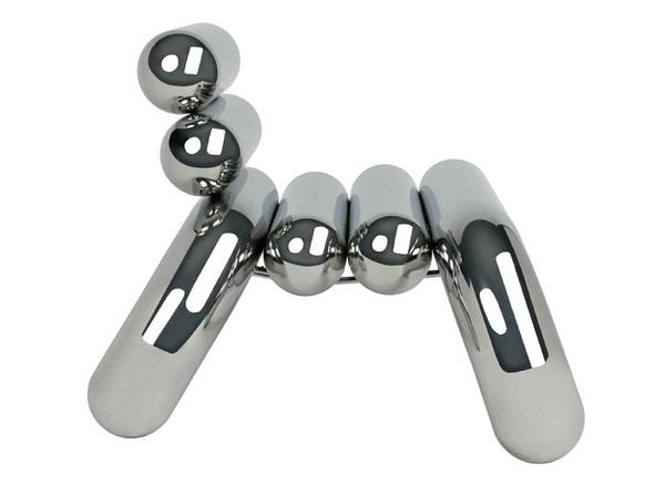 葡萄牙設計師toni grilo為一家年輕的葡萄牙品牌riluc,設計了一套限量版不銹鋼家具。這個五件套家具最近在2011年巴黎國際家具展(maison et objet 2011)上展出,每一件家具都是手工制作,并使用了經打磨、拋光的不銹鋼材料,其中一些作品設計師花費150個小時才制作完成。這一系列是將金屬與其它精致的材料相結合進行制作,其中包括“aline”凳子和椅子,“bidendum”椅子,“many wolds”椅子和 “suspens”扶手椅。