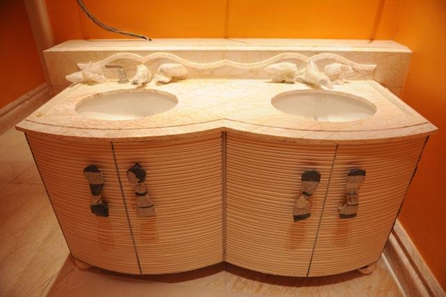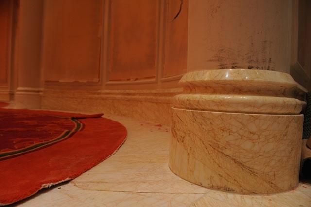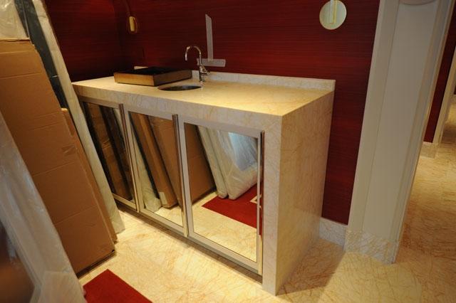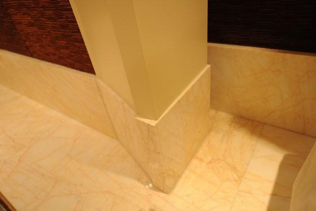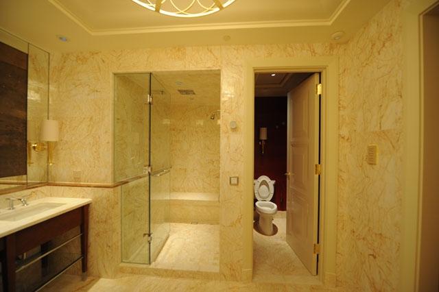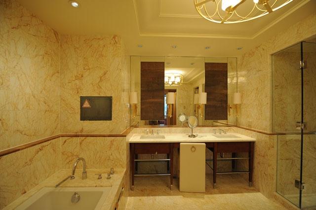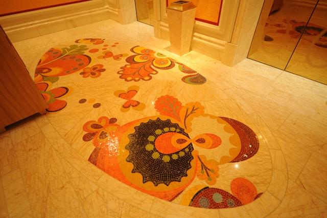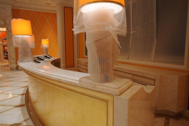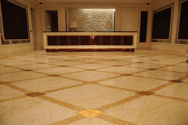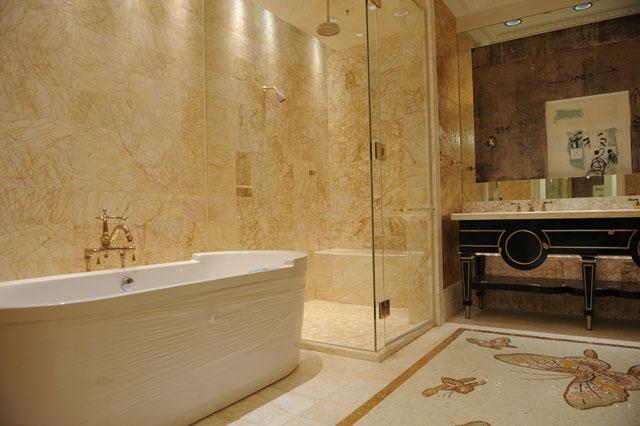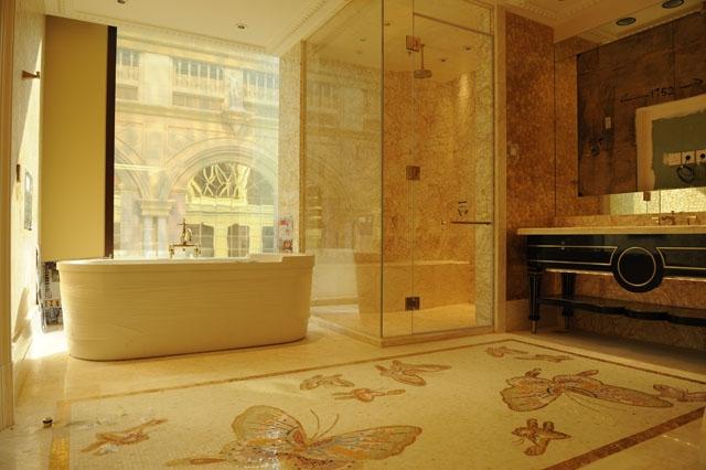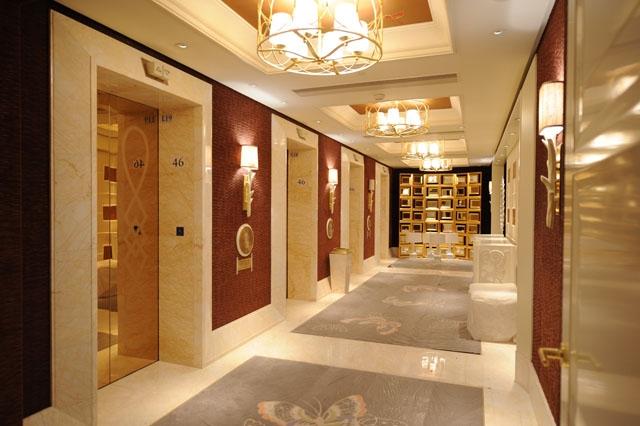 金蜘蛛以其雜亂無章的紋路,在大理石材品種中猶如璀璨的鉆石般分外奪目。設計師將金蜘蛛大面積運用在永利鉆石賭場的地面,將室內空間打造得猶如鉆石般富麗堂皇高貴無比;設計上用金蜘蛛的雜亂無章和規則的菱形圖案做強烈的對比,以動靜結合的設計帶出強烈的視覺沖擊。其整體裝修堪比泰國皇宮的豪華大氣,細節部分處理精細合理,營造出安詳舒適的感覺。