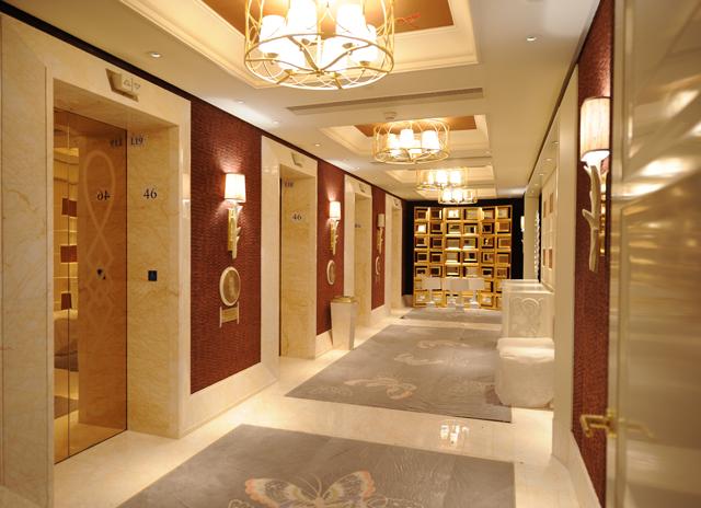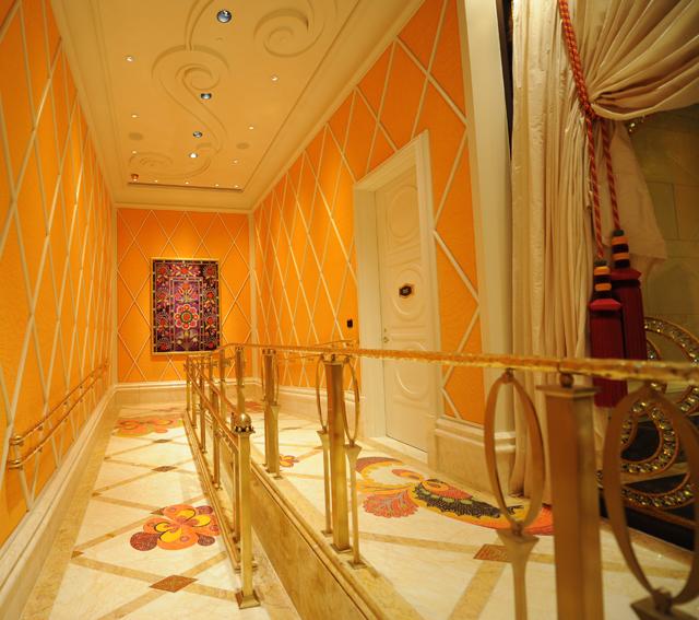 室內(nèi)裝修中,走廊作為通往各個(gè)居室的樞紐和通道,其地位不可小覷!它在古代建筑中被稱做“廊”,也是必不可少的基本空間構(gòu)成。設(shè)計(jì)師在永利鉆石賭場走廊設(shè)計(jì)上,將金蜘蛛大面積運(yùn)用在永利鉆石賭場的走廊地面,走廊沿用大堂地面風(fēng)格,配以馬賽克蝴蝶圖案,交相輝映,打造得猶如鉆石般富麗堂皇高貴無比;設(shè)計(jì)上用金蜘蛛的雜亂無章和規(guī)則的菱形圖案做強(qiáng)烈的對比,加上靈動的蝴蝶圖案進(jìn)行升華,以動靜結(jié)合的設(shè)計(jì)帶出強(qiáng)烈的視覺沖擊。其整體裝修堪比泰國皇宮的豪華大氣,細(xì)節(jié)部分處理精細(xì)合理,營造出安詳舒適的感覺。