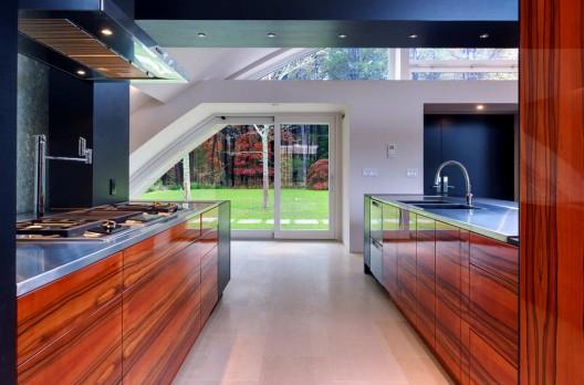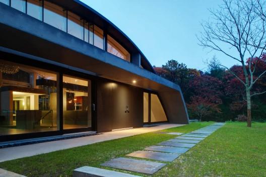 這是一個私人住宅,供一對夫婦和他們的兩只大狗居住。場地位于通向機場高速路的沿線,緊鄰火車站。設計師通過利用工業建筑模式,即一個飛機庫,來打破場地的限制。另外設計師對巨大的無柱穹頂很感興趣,它將整個公共空間包裹,有效地利用了室內空間。