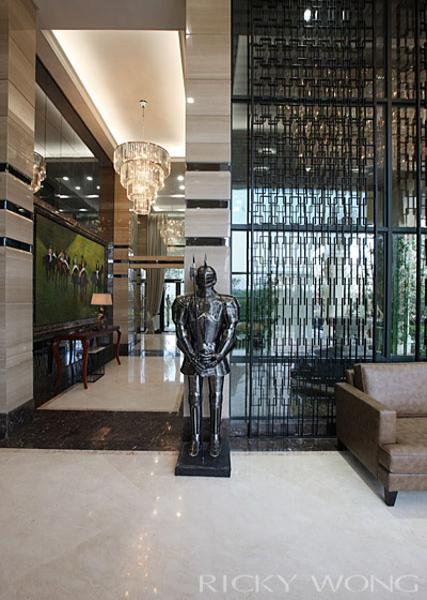 汕頭尚海陽光項目整體設(shè)計上用到比較多的鐵藝,去打造出類似屏風和窗花的造型,兩個鐵甲武士和墻上的馬術(shù)掛畫,是為了能夠融合一種貴族的精神文化,也就是馬術(shù)精神中所強調(diào)的睿智、堅持與超越。