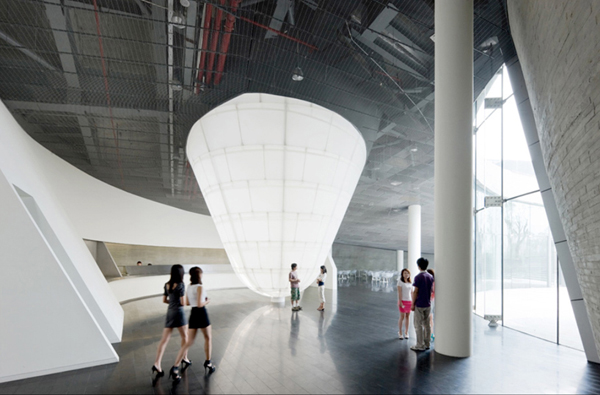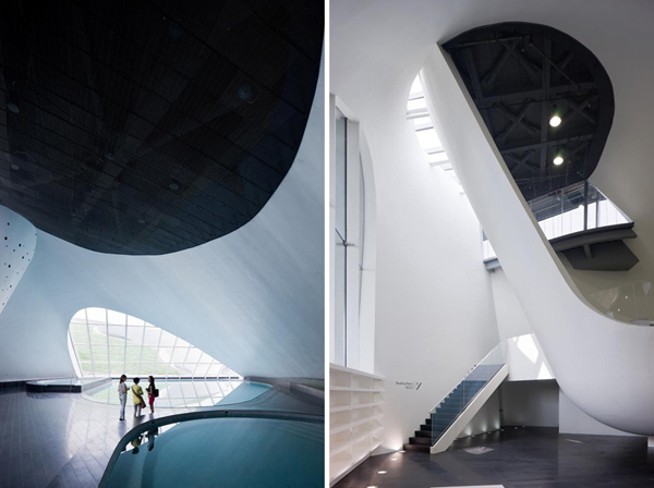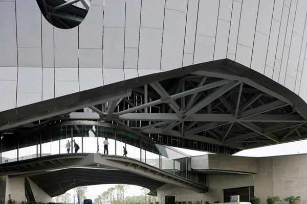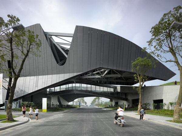 國際著名的墨菲西斯建筑事務所(morphosis architects)最近在中國上海設計完成了“巨人網絡集團公司總部”,這是一個多功能綜合建筑體。整體方案由兩個主要體量構成——分別位于東西兩面——該方案將建筑形態和結構完美的融合于基地之中,并根據景觀平面的起伏進行形態折疊。