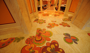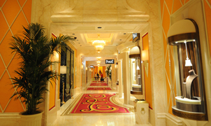 設計師在永利鉆石賭場走廊設計上,將金蜘蛛大面積運用在永利鉆石賭場的走廊地面,走廊沿用大堂地面風格,配以馬賽克蝴蝶圖案,交相輝映,打造得猶如鉆石般富麗堂皇高貴無比;設計上用金蜘蛛的雜亂無章和規則的菱形圖案做強烈的對比,加上靈動的蝴蝶圖案進行升華,以動靜結合的設計帶出強烈的視覺沖擊。其整體裝修堪比泰國皇宮的豪華大氣,細節...[詳細]