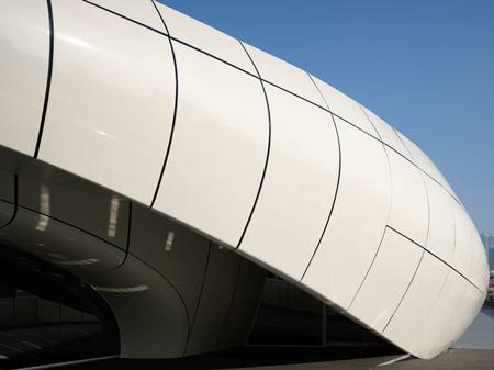 展覽館向公眾開放時間至2008年4月5日。移動藝術展覽館的設計靈感來自于香奈爾的標志性作品the quilted bag。香奈爾以其永久的高雅、簡潔、精美的風格而著稱。這位一致追求復雜、充滿活力和流動空間的設計大師扎哈哈迪德,此次通過嚴格的一體化設計,將作品融入自然與尖端技術相結合的創作設計上。可以說,香奈爾藝術展覽館是一件藝術品,匯集了文化的深邃與藝術的境界。
