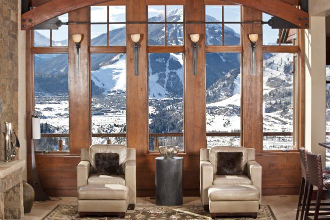 這座房屋可以觀賞周圍四座適宜滑雪的山脈美景,擁有一部電梯和一個游泳池。[page]