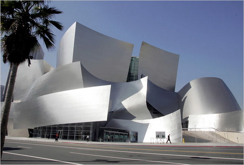 “迪斯尼音樂(lè)廳”(Walt Disney Concert Hall)完成于6年前,是扭轉(zhuǎn)這種趨勢(shì)最初的認(rèn)真努力。建筑師弗蘭克·蓋里費(fèi)了很大的力氣,使他設(shè)計(jì)的這幢建筑物與圍繞它的城市融合。包住建筑物的反光的不銹鋼帶,沿著格蘭德路,增加了建筑物的吸引力。誘惑路人進(jìn)入“迪斯尼音樂(lè)廳”。在正上方,建筑物的表面膨脹與隔壁的“多蘿西·錢(qián)德勒帳篷劇場(chǎng)”(Dorothy Chandler Pavilion)回應(yīng),增加了這幢舊的建筑物的魅力。