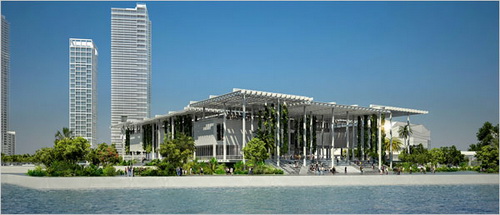 在邁阿密的一個(gè)文化區(qū)——這個(gè)惟一的仍然處于規(guī)劃階段的文化區(qū),由于在多年前就安排了資金,看來(lái)要繼續(xù)建設(shè)。它將采用類似的折衷方案。這個(gè)項(xiàng)目將利用靠近比斯坎灣的一個(gè)30英畝的垃圾填埋場(chǎng)建設(shè)。旁邊曾經(jīng)是邁阿密主要商業(yè)街道。一片呈波浪形的沙丘,阻斷了指向商業(yè)大街的視線,并且使這個(gè)地區(qū)在上個(gè)世紀(jì)七十年代和八十年代成為犯罪熱點(diǎn)。這片沙丘將被移走。新的科學(xué)和藝術(shù)博物館將建造在公園的旁邊。