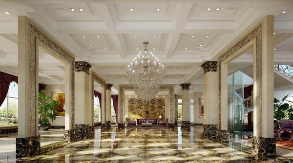 這是三星五金新辦公樓的設計方案。對于很多人而言,古典的魅力就在于其特有的貴族氣。客觀而言,如果沒有貴族氣,古典就失去了存在的理由。大廳地面采用深色天然石材做為材料,帶有雕刻的柱面底座與地面石材風格一致。