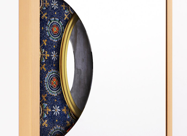 這些鏡子被裝裱在樸素的木質鏡框中,組合成一個陣列,并在鏡面上直接反射出例如古代織物圖案,拜占庭風格的鑲嵌畫,雕塑,繩索和燭臺等元素。由于這些作品包含了許多意大利歷史上著名的作品和材料,這種風格在藝術與文化歷史上賦予了作品另一層次的含義,并經由藝術家gilad的創作,展現了古今之間的奇妙對比。