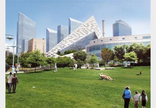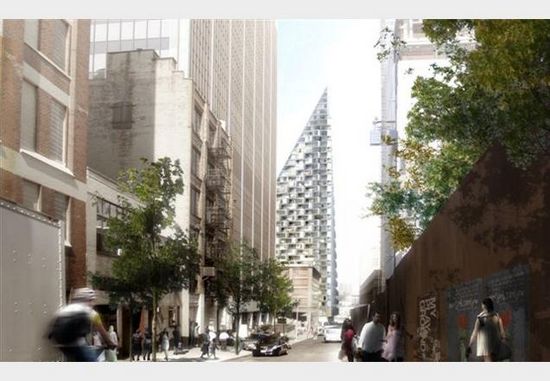 丹麥建筑單位比賈克-英格爾斯建筑事務所(Bjarke Ingels)最近公布了為紐約的“西57大街”設計的一幢金字塔形的公寓大樓的圖形。