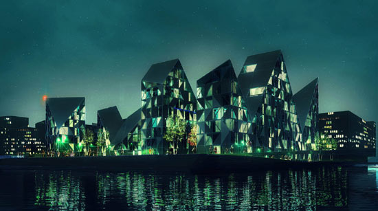 由julien de smedt建筑師、 CEBRA 和 louis paillard 共同合作的項目最近在丹麥的第二大城市Aarhus贏得了設計比賽。這是集住宅、辦公等一體化的設施,稱“冰山一角項目”,次項目將在2010年完成。