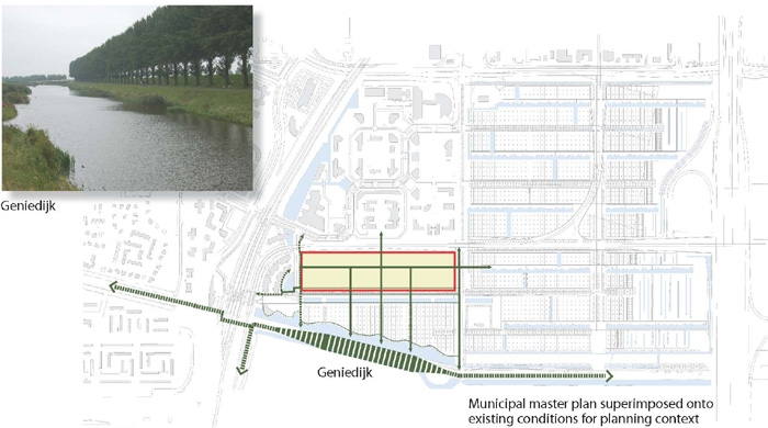 distinct planning template of the "polder grammatical" (narrow lots and orthogonal roads,
