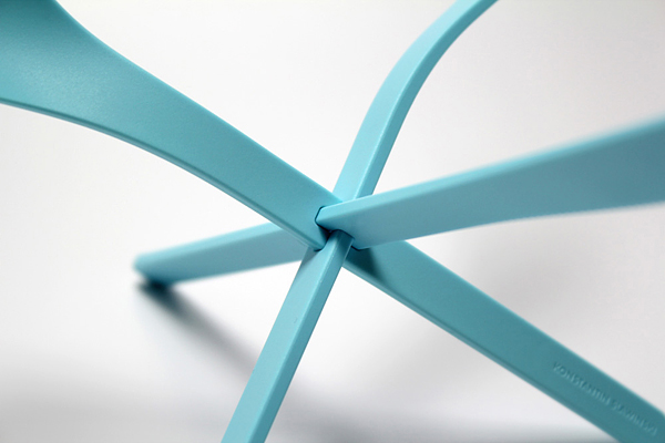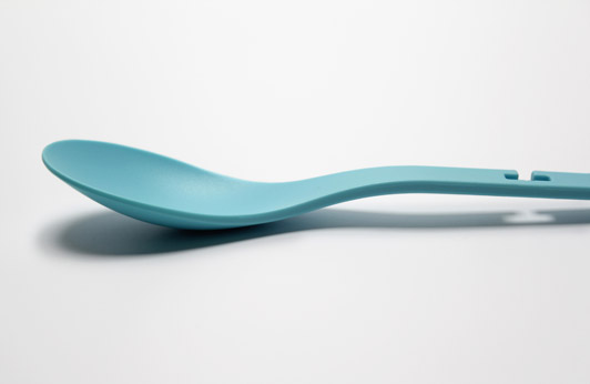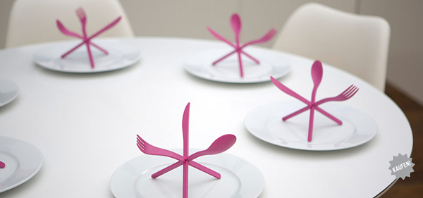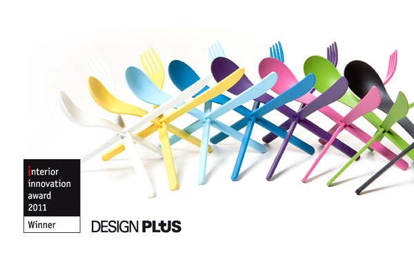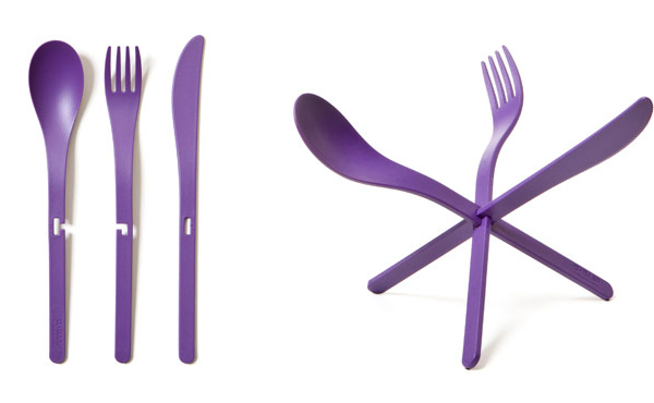 來自漢諾威的ding3000設計工作室帶來的這套餐具起名為“交融”,勺子、叉子和刀具之間能通過中間的卡位連接在一起形成一個穩固的三角形的支架,設計的十分巧妙而且既美觀又實用。